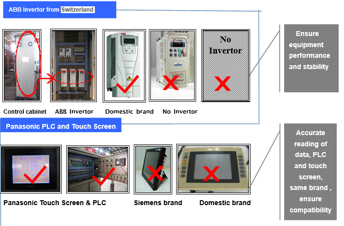 1. Kontrol Sistemi : adpot Ekipmanın kararlı çalışmasını sağlamak için ABB invertörünü ve Panasonic PLC ve Dokunmatik Ekranlı elektronik kontrol bileşenlerini içe aktarın.